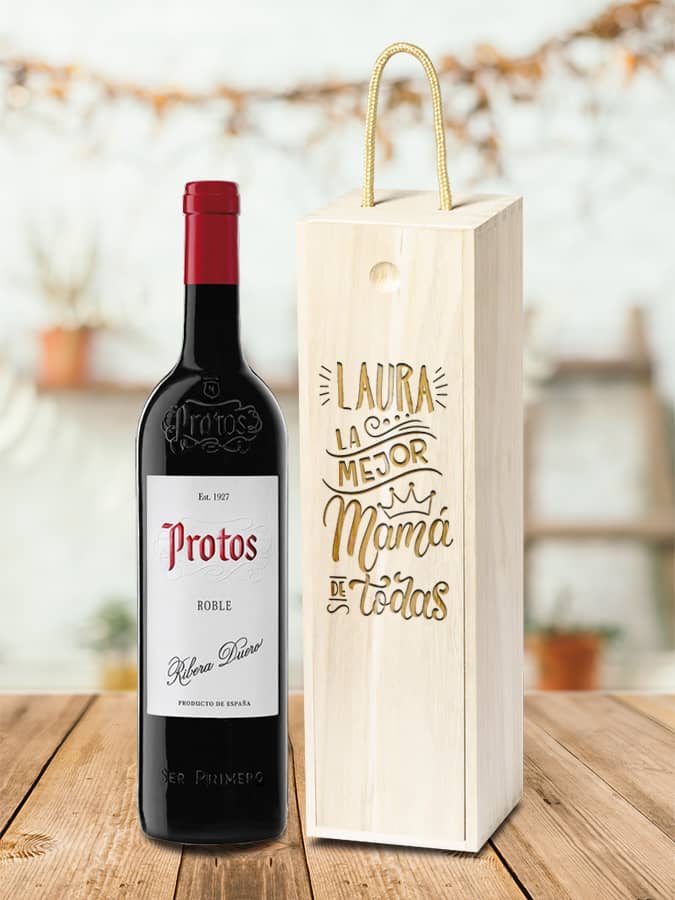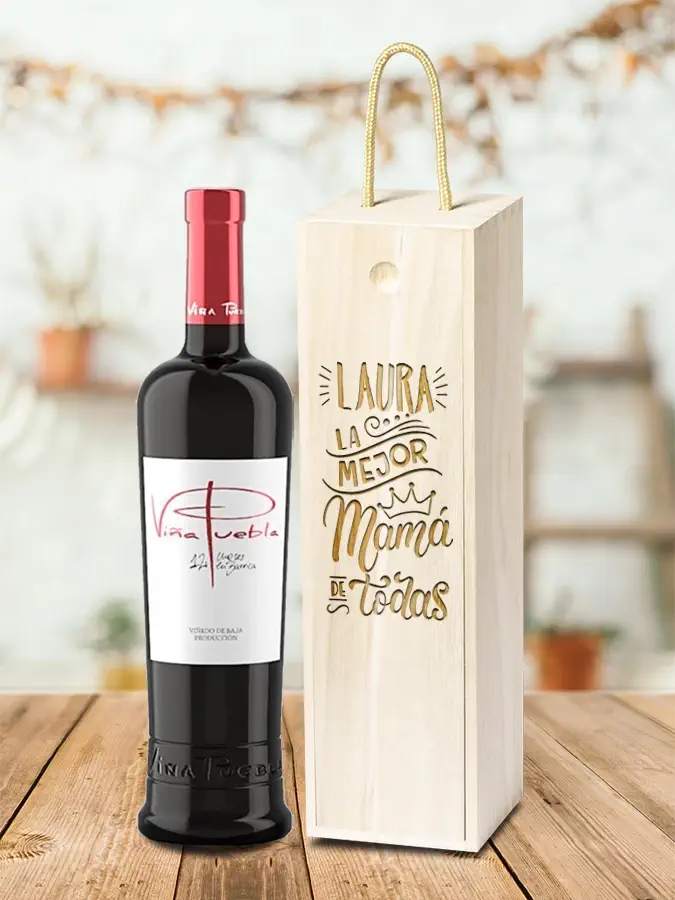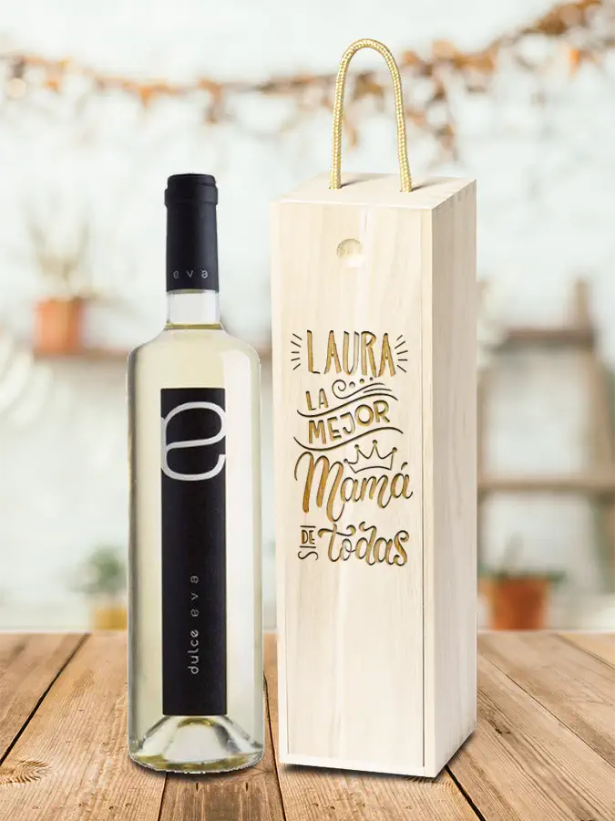 Imagina la sonrisa en su rostro cuando abra una hermosa caja decorada con su nombre con un mensaje tan bonito. ¡Es mucho más que un simple vino! Es un gesto lleno de cariño que dice «¡Te quiero, mamá!»