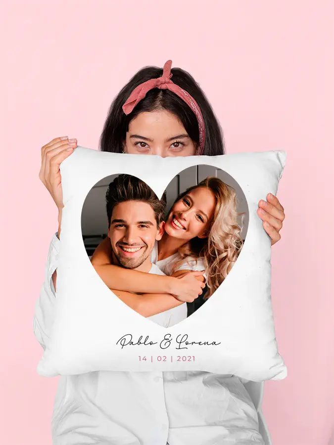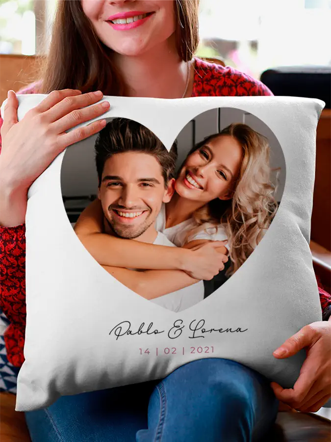 Imagina esto: un suave y acogedor cojín donde puedes imprimir esa foto que tanto amas y los nombres de ambos además con la fecha. ¿No es una idea genial? Perfecto para decorar el sofá, la cama o incluso para esos momentos de siesta en pareja. 😴💕