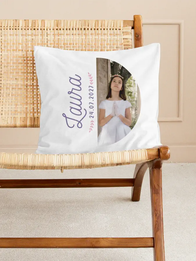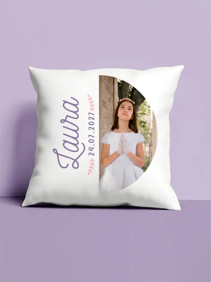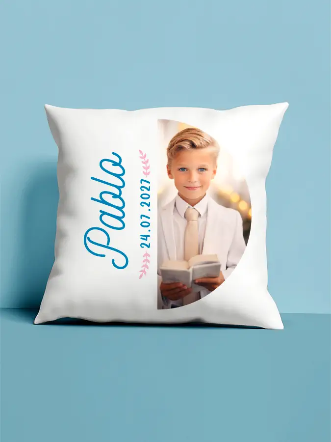 ¿Estás buscando el regalo original de Comunión? ¡No busques más! Tenemos el cojín personalizado para Comunión con foto, nombre y fecha ideal que hará que ese día sea aún más memorable. 🎉