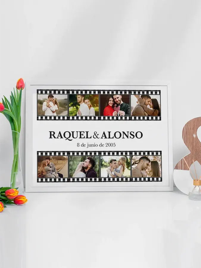 Con nuestras opciones de venta online, puedes elegir las fotos más significativas, agregar sus nombres y la fecha de un momento especial (como su primer encuentro o su aniversario). Así, no solo regalas un objeto decorativo, sino también un pedazo de su historia juntos.