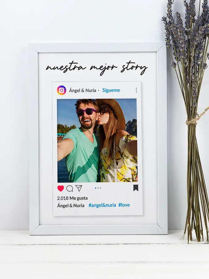 ¿Buscas un regalo original para sorprender a tu pareja? El Cuadro Personalizado Story de Instagram con la foto que quieras y vuestros nombres es el regalo perfecto para San Valentín o como regalo de cumpleaños para tu pareja.