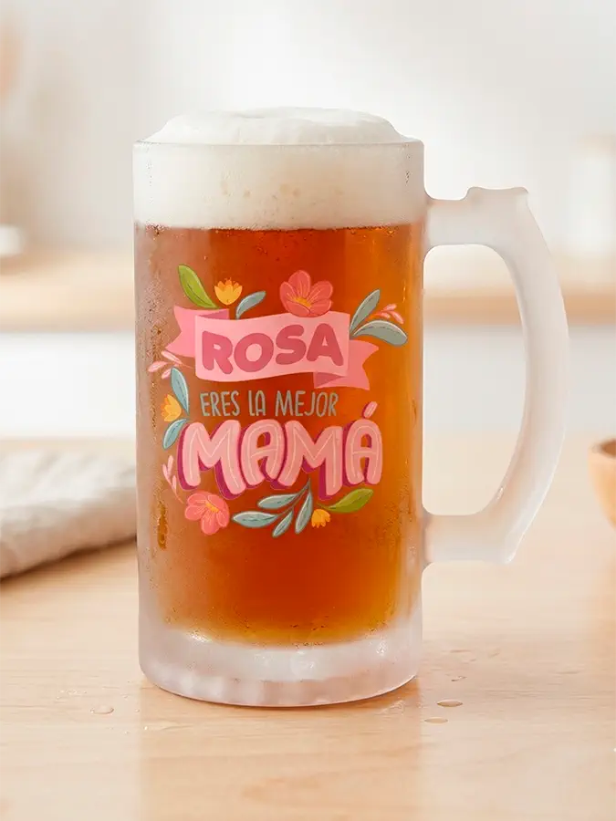 Si estás buscando un regalo original para mamá qué tal una jarra de cerveza personalizada La Mejor Mamá del Mundo con su nombre. 🍻✨