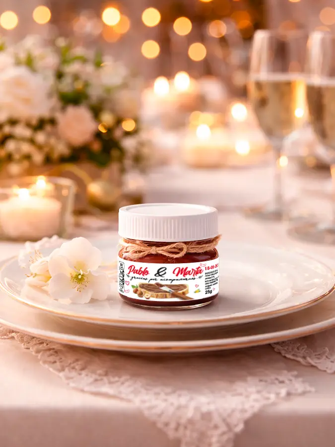 ¡Hola! Si estás buscando un regalo original para una boda, ¡has llegado al lugar adecuado! Imagina sorprender a tus invitados con una deliciosas mini Nutella personalizada para boda con el nombre de los novios y la fecha de ese gran día.