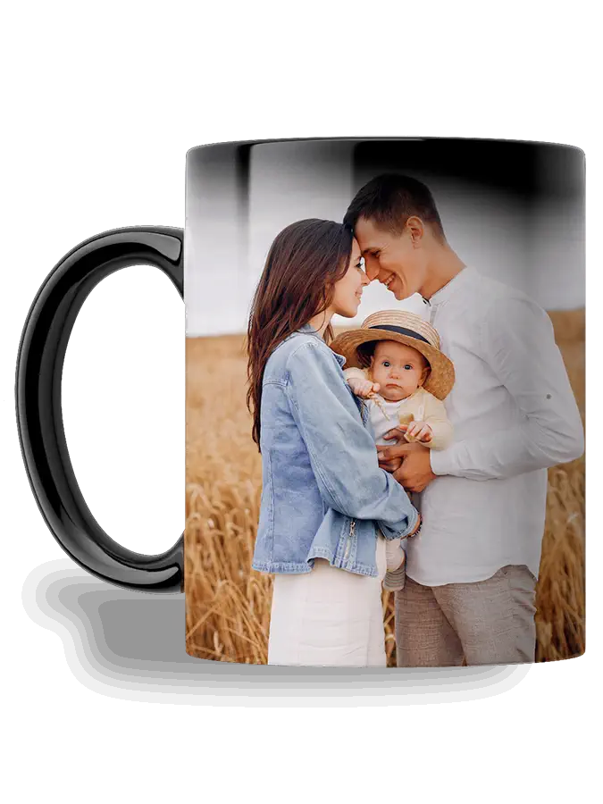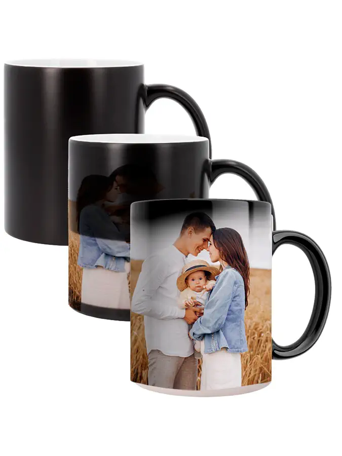 El color negro desaparece gradualmente cuando se llena de líquido caliente, dejando ver la imagen, y vuelve al color inicial cuando se enfría. Un regalo personalizado super original. Un regalo que mantiene el misterio hasta el último momento, como un regalo para un futuro papá, cuando quieres pedir matrimonio, un regalo de cumpleaños…