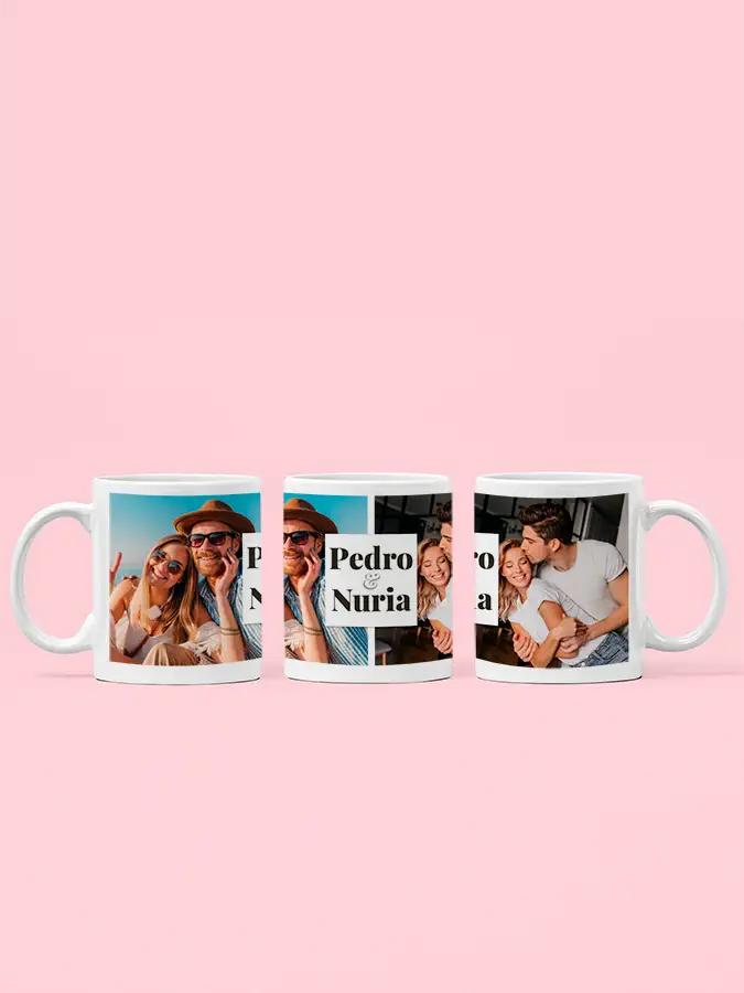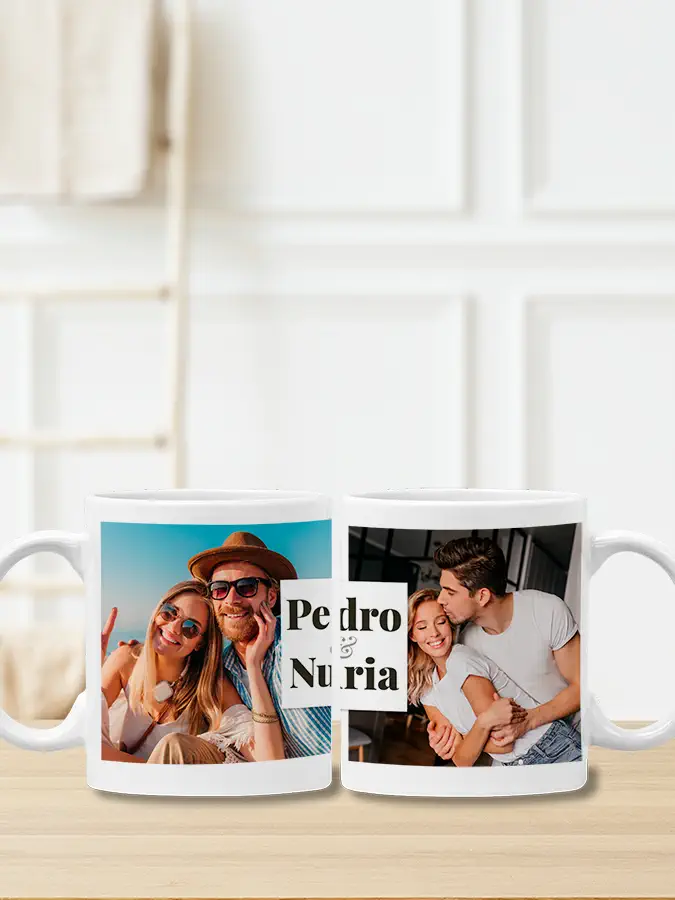 Nuestra Taza personalizada para parejas es un regalo ideal para San Valentín o para el cumpleaños de esa persona especial en tu vida. Un Regalo Original con las dos fotos que tú elijas y vuestros nombres. Con nuestro personalizador online verás el resultado final.