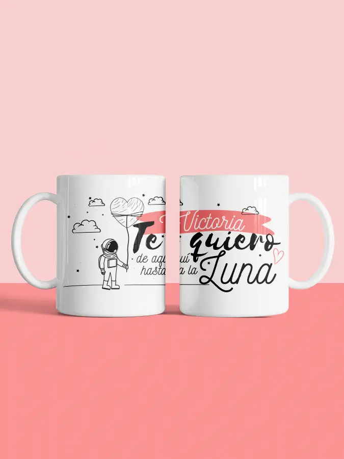 Si estás buscando la forma perfecta de sorprender a tu pareja por San Valentín o su cumpleaños, nuestra Taza personalizada Te quiero hasta la Luna con su nombre es una opción que no solo es única, sino que también es súper práctica y adorable.